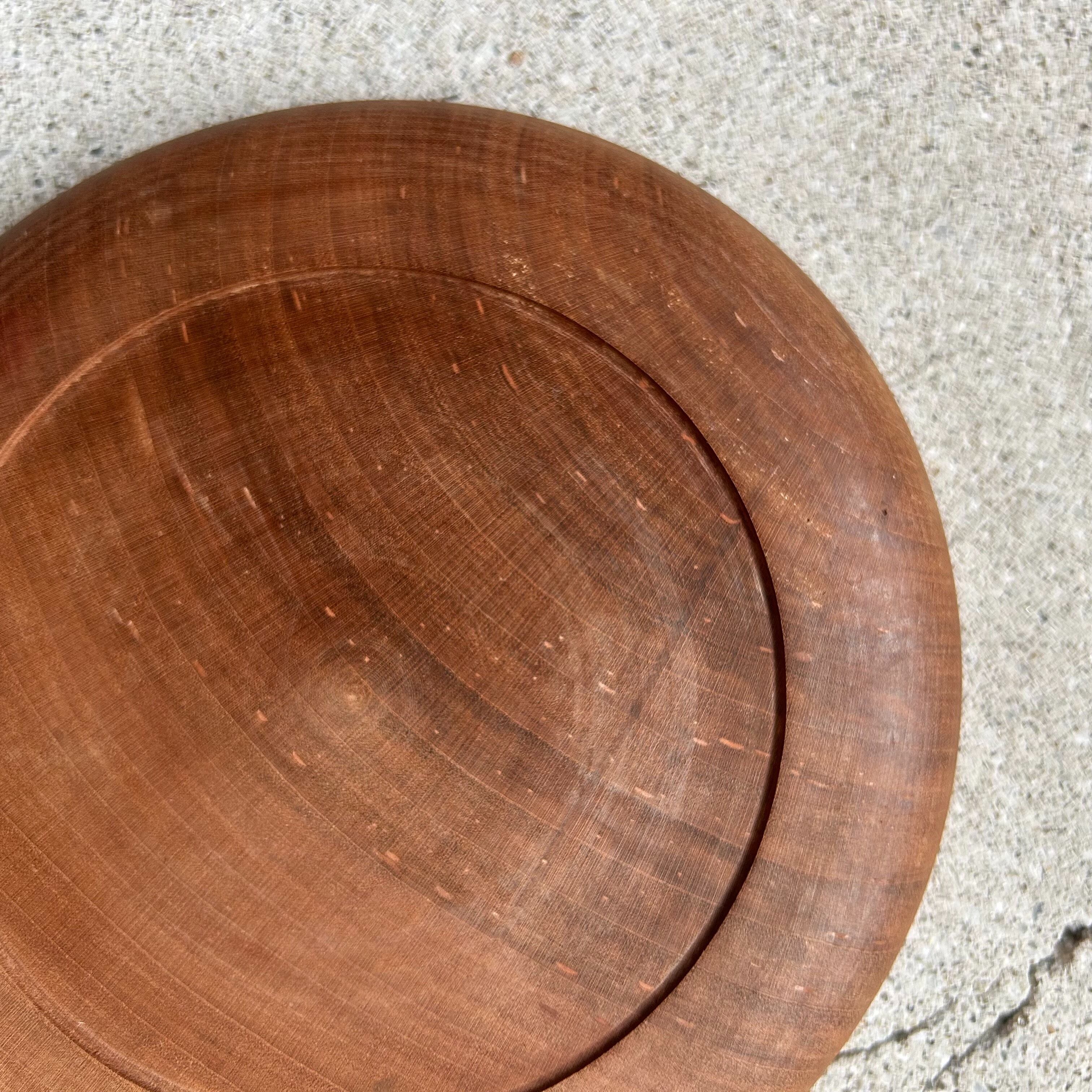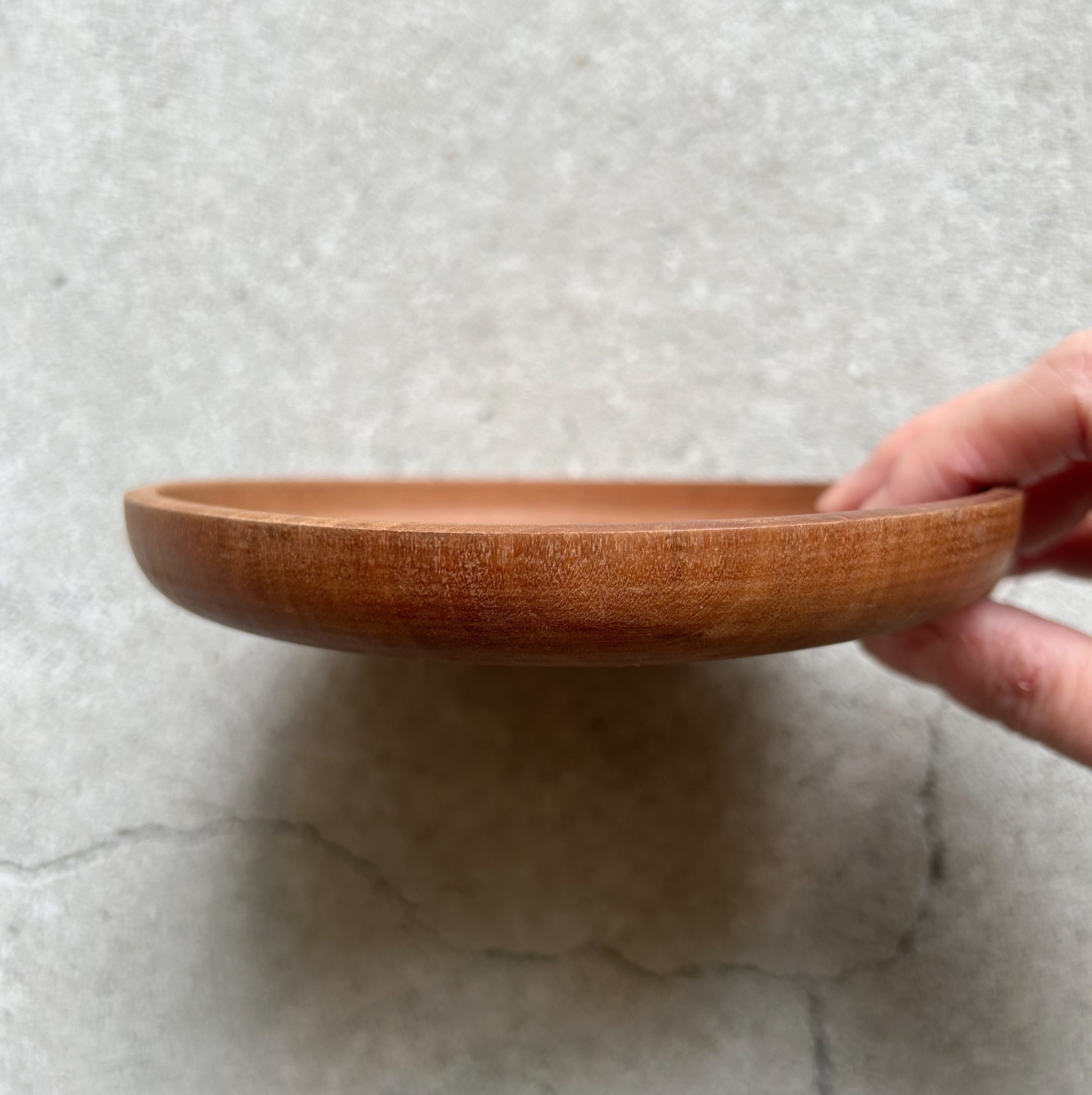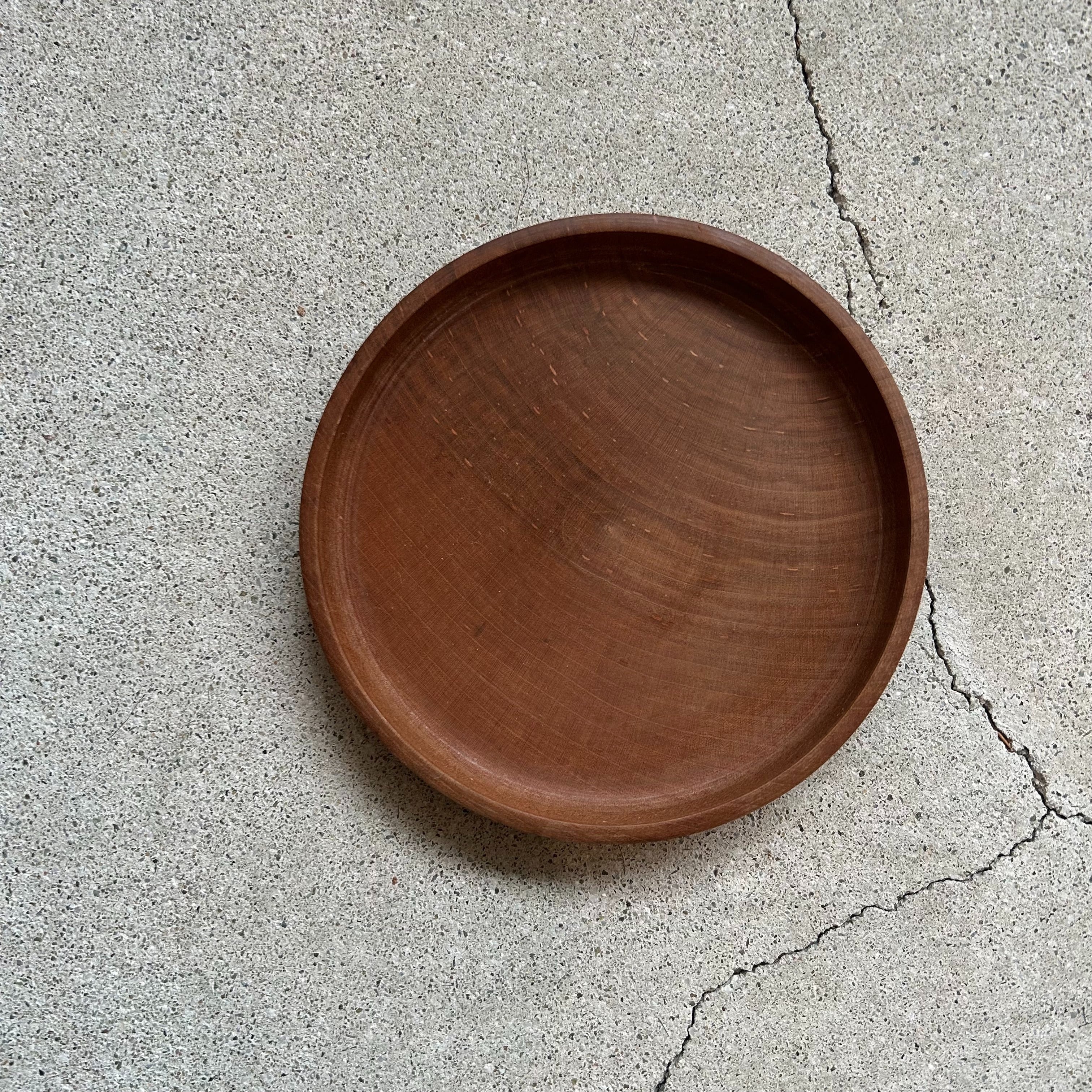 古い一枚板の小さな丸盆です。味のある木目と自然な木の色味が良い雰囲気。