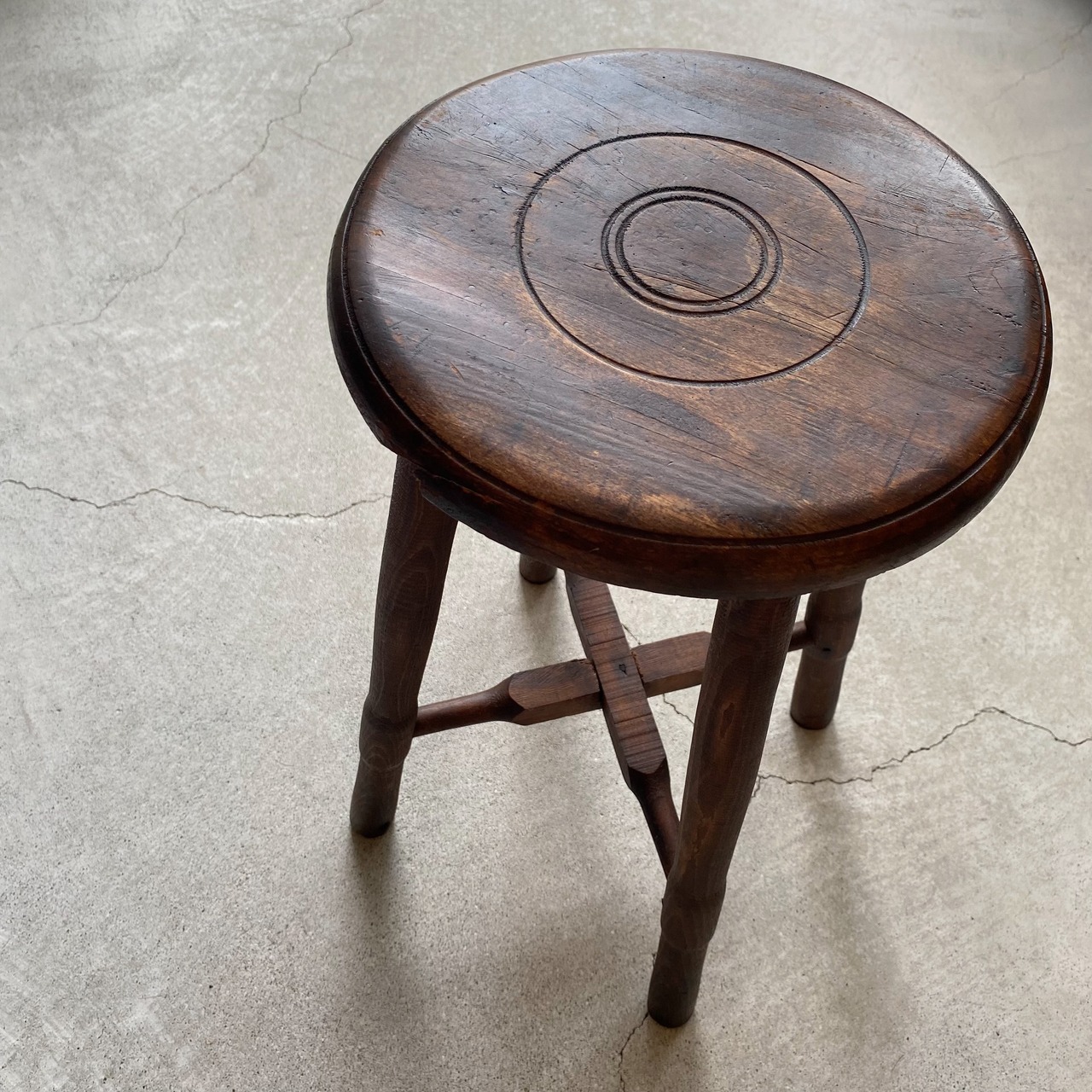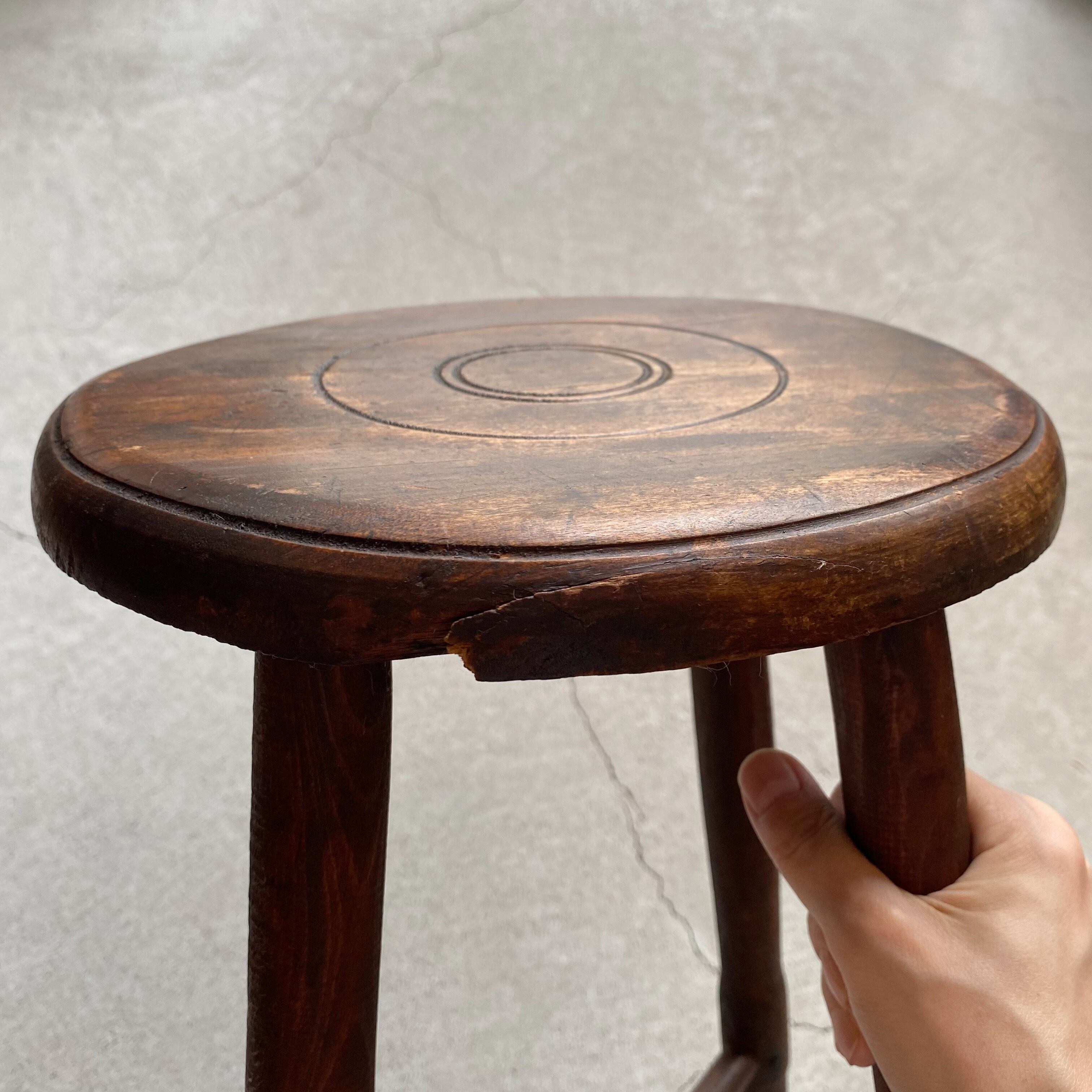 古い物という事に加え、背もたれのないスツールタイプの椅子という事もあり、実際に長時間座って頂くというよりは雑貨や花瓶などを置いてディスプレイに使って頂くのが良いかなと思います。