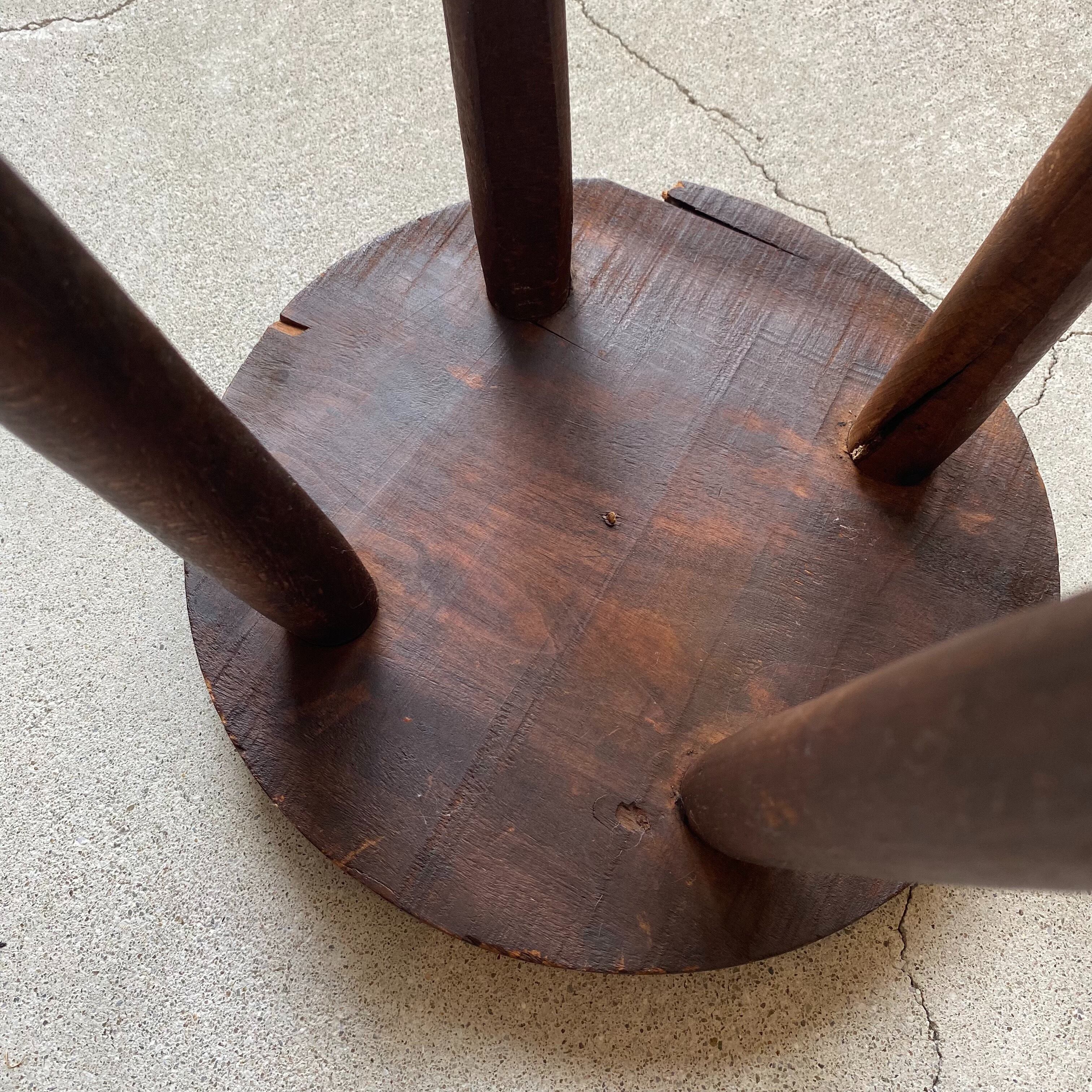 古い物という事もあり、擦れや汚れ、若干の欠けとヒビ、木と木に少しの隙間などが見られ、座面の木に凹凸がございます。(画像をご参照ください)