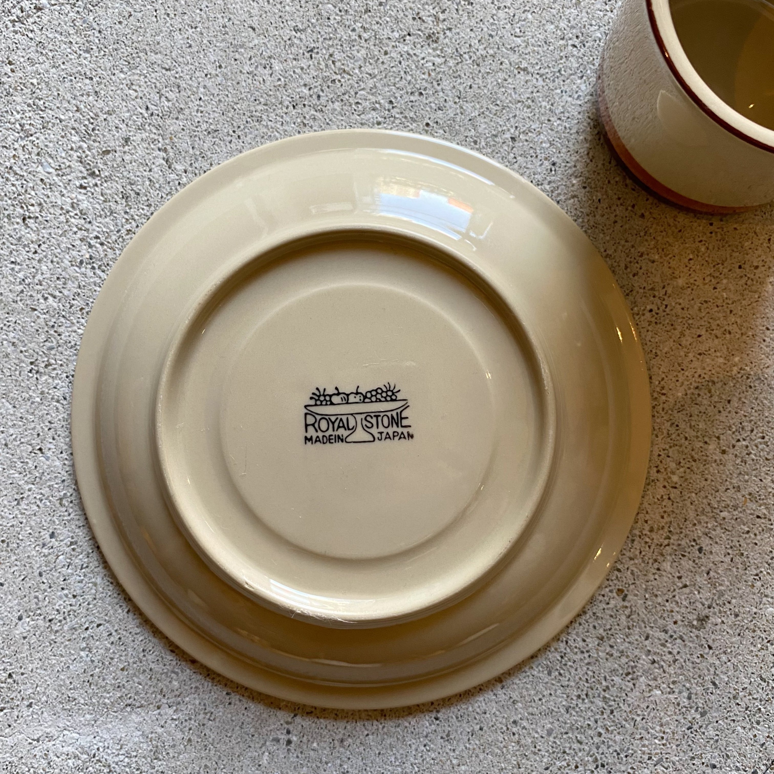 昭和レトロな日本製ストーンウェア・ROYALSTONEというメーカーのコーヒーカップ&ソーサーです。